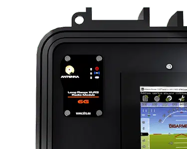 It uses the long-range RXLRS receiver, prepared for servo control, connection with autopilot and Mavlink or transparent telemetry.