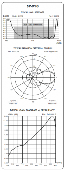 Radiation (E-Plane) beamwidht @-3dB: 38º @ 880Mhz.