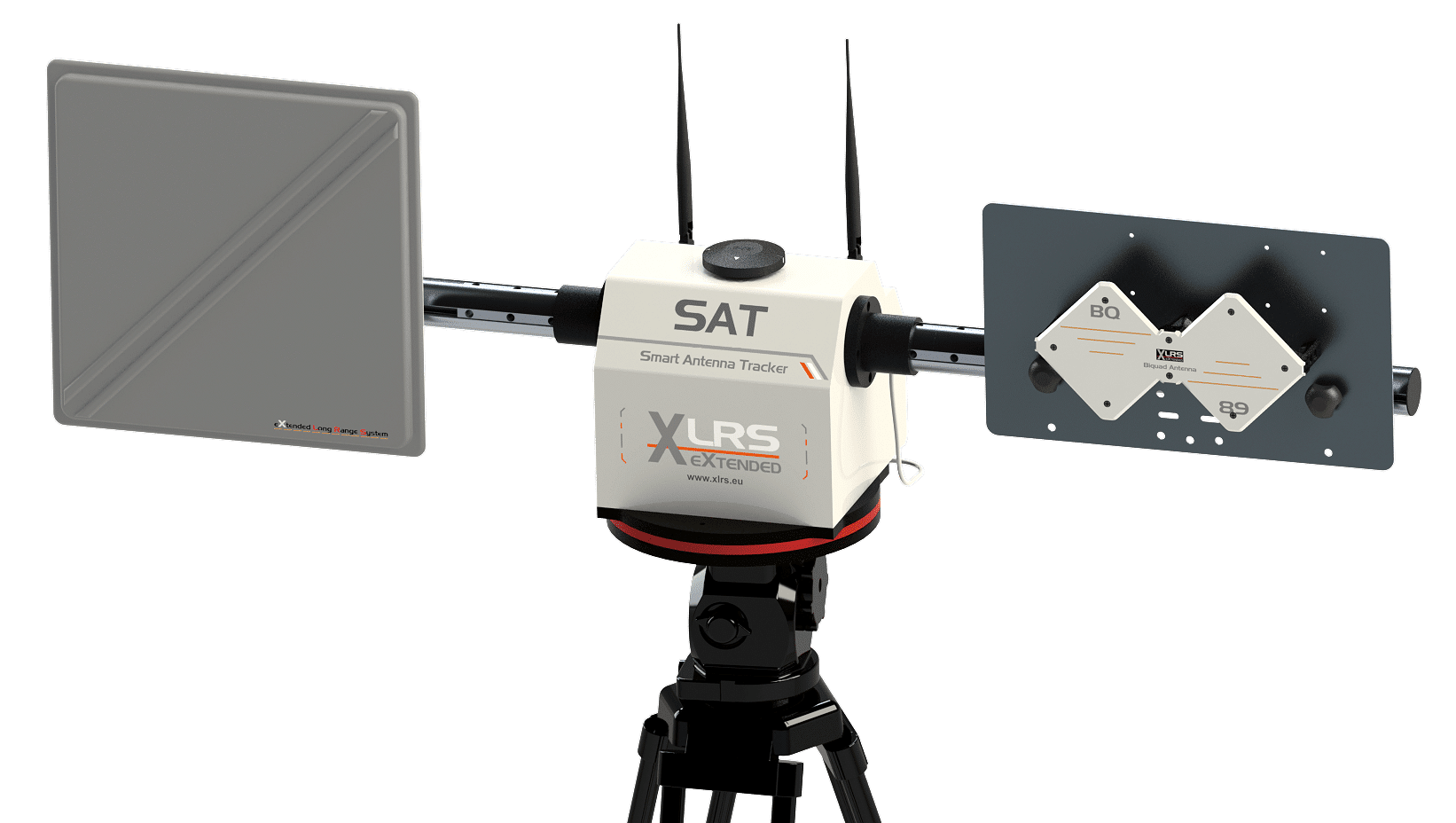 A professional automatic tracking antenna, robust, powerful, 360º rotation, 1º precision, with battery included for 4h, wireless connection without delay of 30m to the base station. Also cable connection for those who need it.